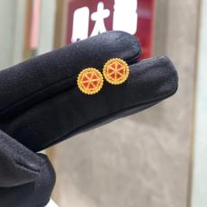 代购 传承系列珐琅万福延绵足金黄金耳钉女 正品定价R36620